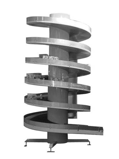 al di là del semplice nastro trasportatore e al di là del magazzino dinamico ad alveare, esiste la possibilità di sfruttare l'altezza del capannone con nastri di trasporto a spirale che oltre a permettere la movimentazione tra piani diversi, svolgono anche funzione di buffer per adeguare la capacità di stoccaggio di una area a quella di un'altra.