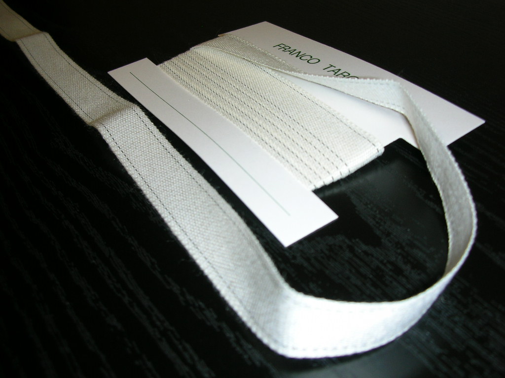 nastro guidabiancheria in misto Twaron\ poliestere - larghezza mm 15 - bobine da mt. 400 - alta resistenza alla temperatura ed alla trazione - TRACCIA SULLA BIANCHERIA TRASCURABILE