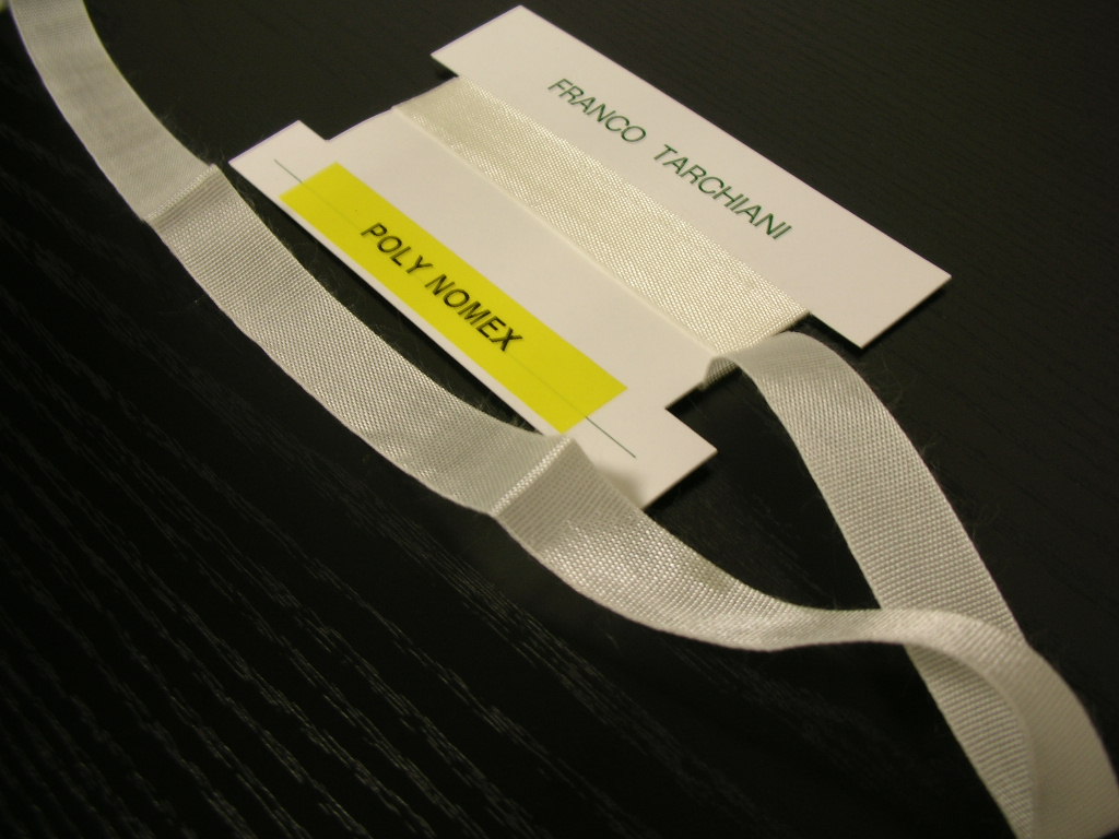 nastro guidabiancheria in fibra aramide 100% - hl. mm. 12 - bobine da mt. 91 - massima resistenza alla temperatura - raccomandato per mangani ad olio ed a gas.