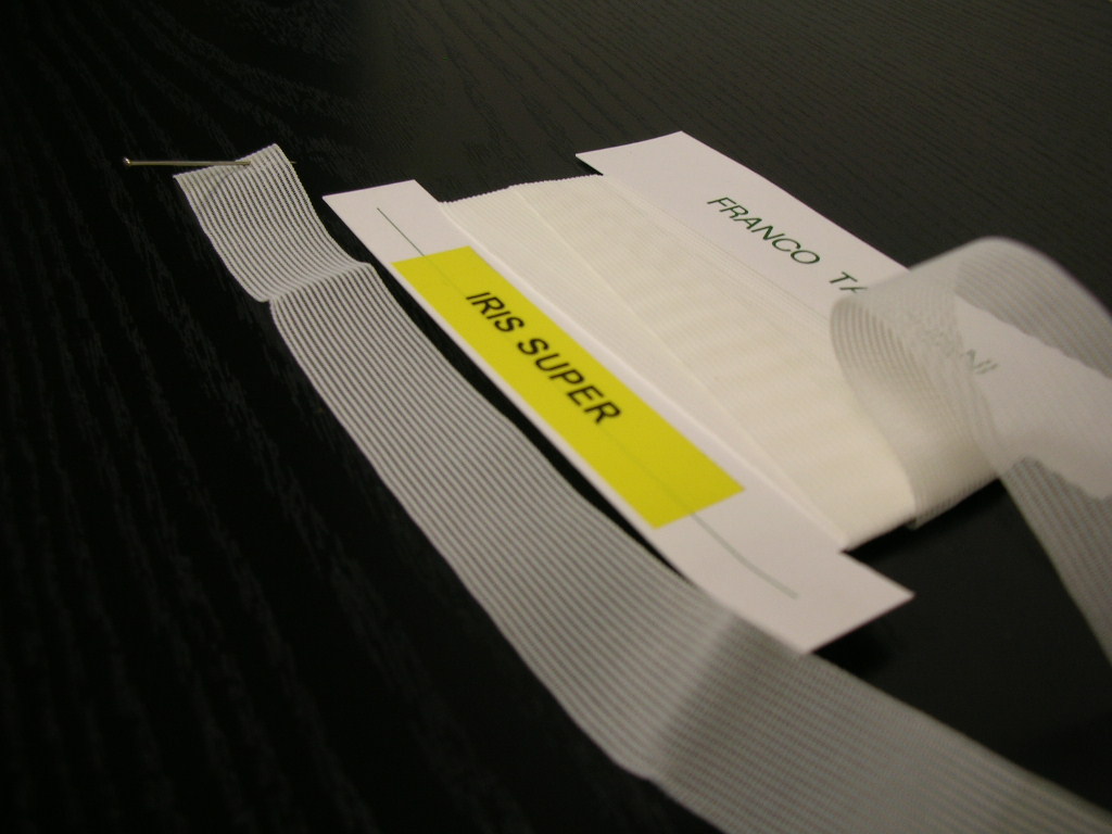 nastro guidabiancheria in poliestere 100%, hl. mm. 15 - bobine da mt. 400 - buona resistenza - trama a rete molto fine, traccia sulla biancheria trascurabile.