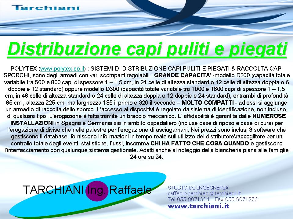 Le nostre ditte sono sorte basandosi sulla esperienza maturata da Franco Tarchiani che iniziò nel 1965 a lavorare nelle forniture alle lavanderie industriali quale dipendente di Primaria Casa operante sul mercato italiano.