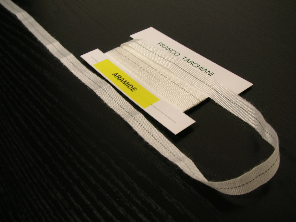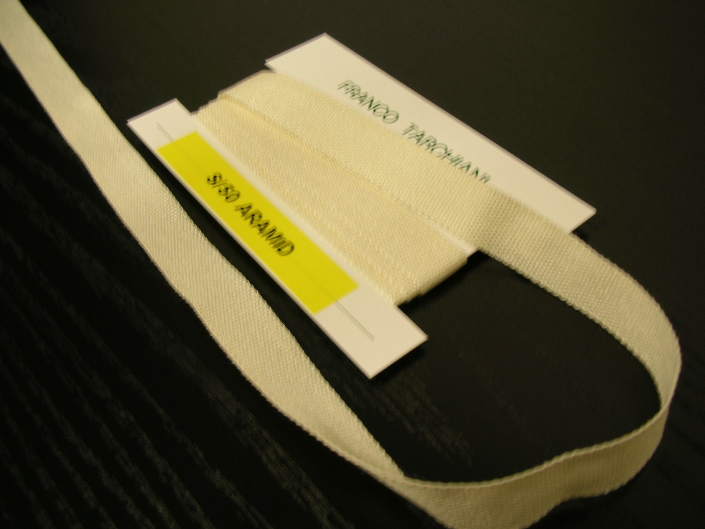 nastro guidabiancheria in fibra aramide 100% - hl. mm. 12 - bobine da mt. 91 - massima resistenza alla temperatura - raccomandato per mangani ad olio ed a gas.